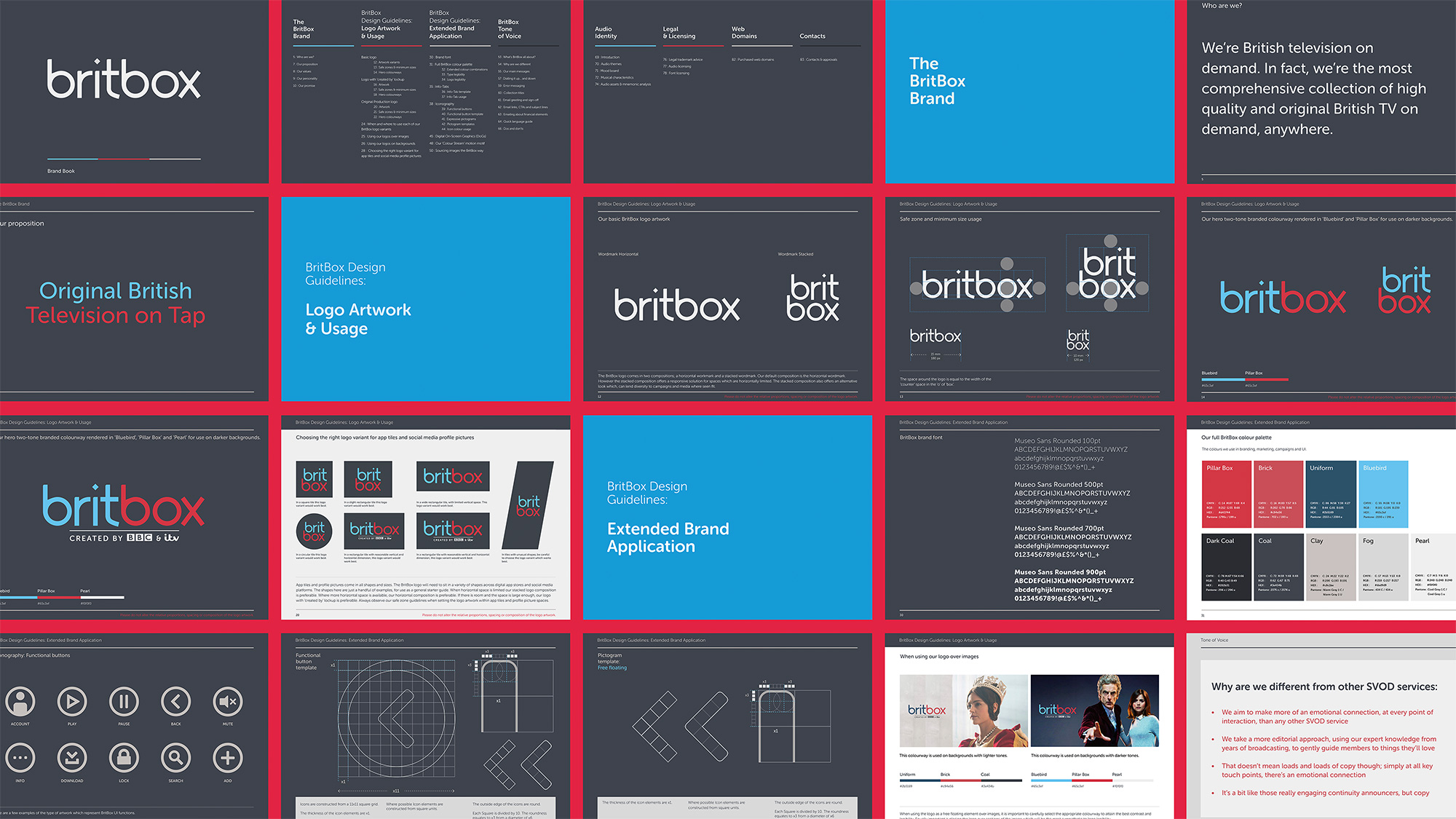 We used this bespoke typeface, custom made from the unique qualities of both broadcasters to create the wordmark logo for BritBox.